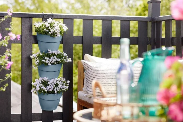 If your terrace or balcony is not big enough or green enough, just get creative and go vertical! Thanks to the three pots, the vibia campana vertical garden can accommodate all of your favourite plants. Experiment with the two hooks provided and hang it on the wall or on the balcony railing! This way, you can easily brighten up your balcony and turn a bare wall into a green oasis. The overflow tube ensures that you can enjoy the greenery longer, as excess water can drain away. You can trust that our love for nature is reflected in how this pot was produced: it’s made from recycled plastic, produced with wind energy from our own windmill, and it’s also fully recyclable.