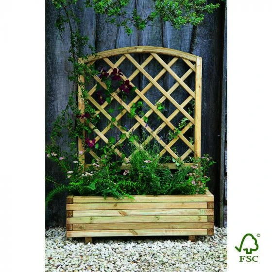 A versitile pre-built planter with integrated curved trellis. (Trellis fixed separately)